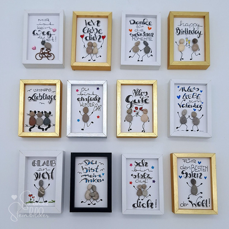 Entdecke meine handgefertigten Steinbilder, die aus eigenhändig gesammelten Steinen und individuell gestalteten Texten bestehen. Jedes Kunstwerk ist ein Unikat.